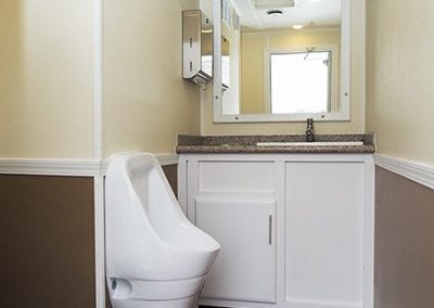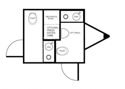 The Elegant John Classic is a beautiful luxury restroom trailer that can provide you and your guests with pure comfort. With all of the amenities of a stationary bathroom, you’ll feel right at home. This restroom trailer comes standard with separate male and female entrances, hand finished corian countertops, porcelain toilets, stainless steel sinks, LED lighting and stereo system. It is also equipped with heating and air conditioning to have a climate controlled setting all year round. The Elegant John is perfect for up small to medium sized weddings, VIP areas, festivals, family reunions, restroom renovations, public and corporate events.